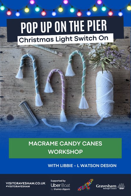 Join Libbie at the November pop-up on the Pier weekend (coinciding with the Christmas Light Switch on) and make your very own Macrame Candy Cane Decorations.